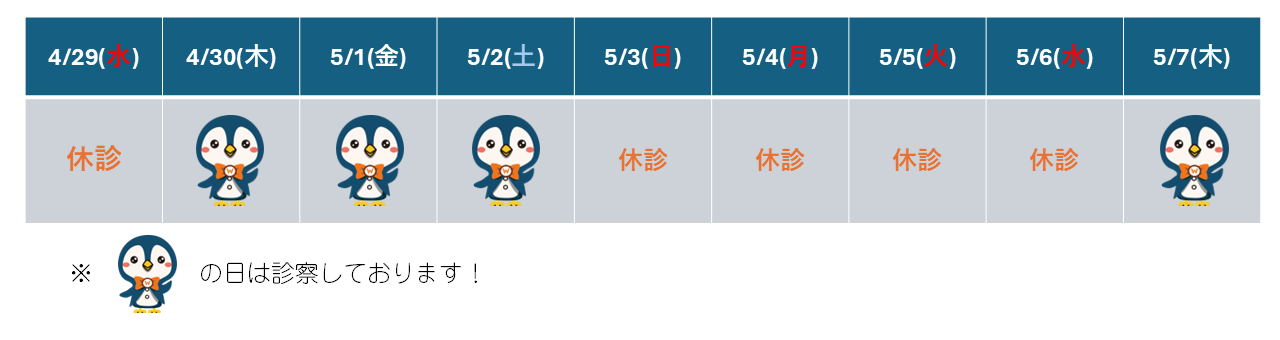 ☆GW中の診療日のお知らせ